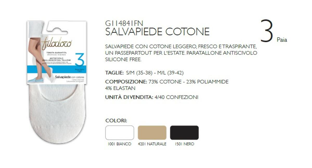 Salva-piede in confezione da 3 paia realizzato in cotone. Antiscivolo anallergico sul tallone per una tenuta garantita