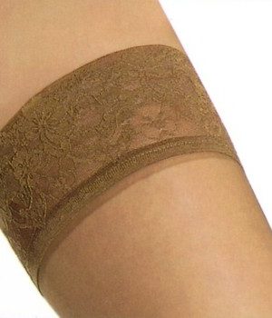 Calza autoreggente in lycra, velata con pizzo. Doppia fascia in silicone