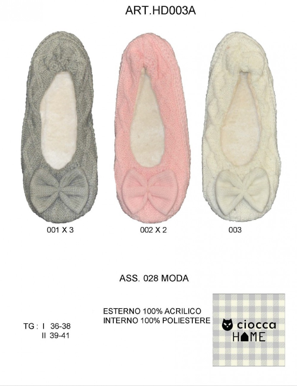 Babbuccia imbottita con suola antiscivolo e fiocco applicato.