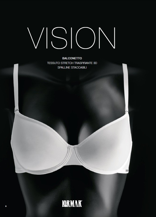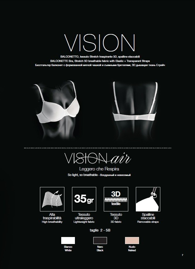 Vision è caraterizzato anche grazie anche alla scelta degli accessori, dalle fettucce in chiffon alle ganciature in metallo tono su tono nickelfree.