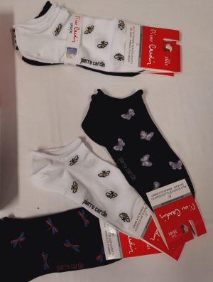 Calza corta ricamata realizzata in filo di scozia ed in taglia unica 35-41Composizione 75% cotone 18% poliestere 5% poliestere 3% elastanConfezione da12 paia assortite nei coloriOrdine mi nimo 12 e multipli