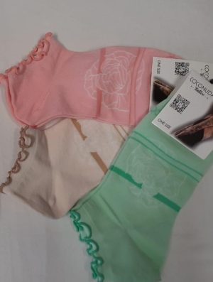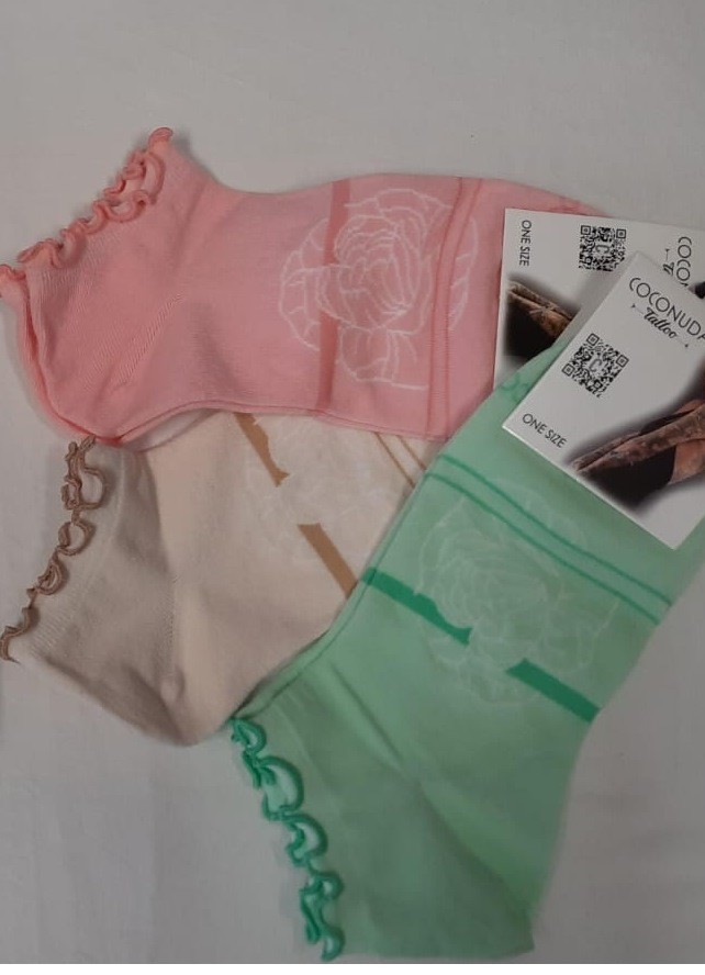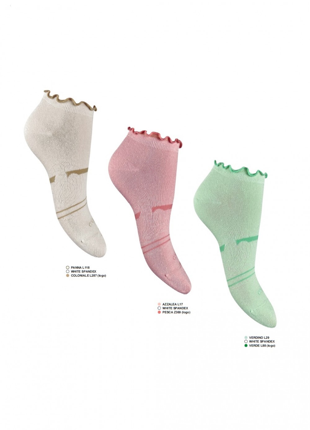 Calza corta ricamata realizzata in taglia unica 35-41, rimagliata a mano con lavorazione 200 aghiComposizione 75% cotone 23% poliestere 2% elastanConfezione da 12 paia assortite nei colori Ordine minimo 12 e multipli