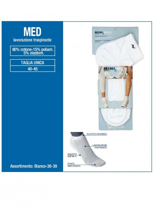 Calza corta traspirante con punta rinforzata. Taglia unica 38-39Composizione 80% cotone 15% poliammide 5% elastanOrdine minimo 6 pz e multipli