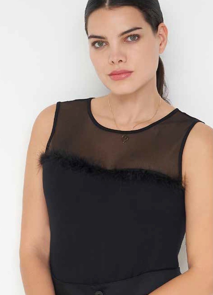 Maglia sottogiacca in viscosa elasticizzata con decorazione in piumaggio
