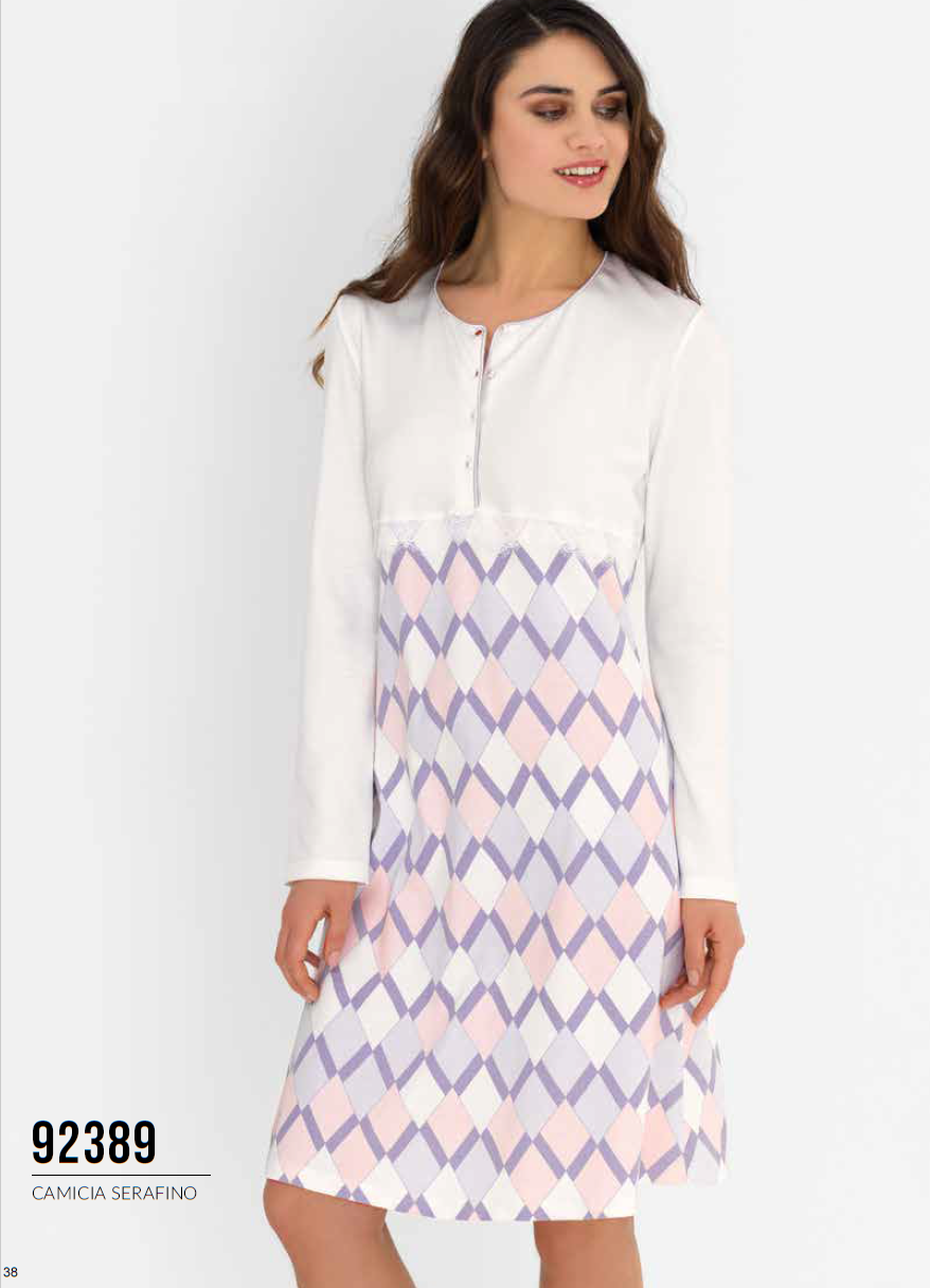 Camicia serafino dal doppio interlock: l’unito in contrasto con quello a fantasia. Uno stile contemporaneo, per una donna attenta ai dettagli, un taglio moderno ed una stampa serigrafica per soddisfare il gusto giovane, ma anche quello classico, ma comunque sempre attento alle tendenze