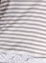 Camicia da notte a spalla larga in soffice viscosa con ricercato motivo stripes e prezioso inserto in pizzo sul fondo. Lunghezza 85 cm
