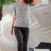 Camicia da notte in viscosa elasticizzata serafino con bordo a volant sul retro in tinta unita in contrasto con la fantasia a righe