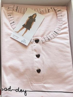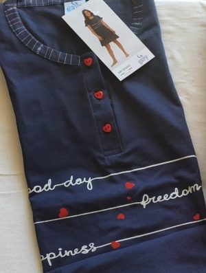 Camicia da notte a tinta unita con stampa e scollo serafino a tre bottoni realizzata in jersey