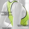 Canotta sportiva in traspirante microfibra, con inserti in rete e profili a contrasto colore, massimo comfort senza cuciture.