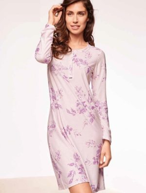 Camicia da notte realizzata con delicata stampa floreale e scollo serafino
