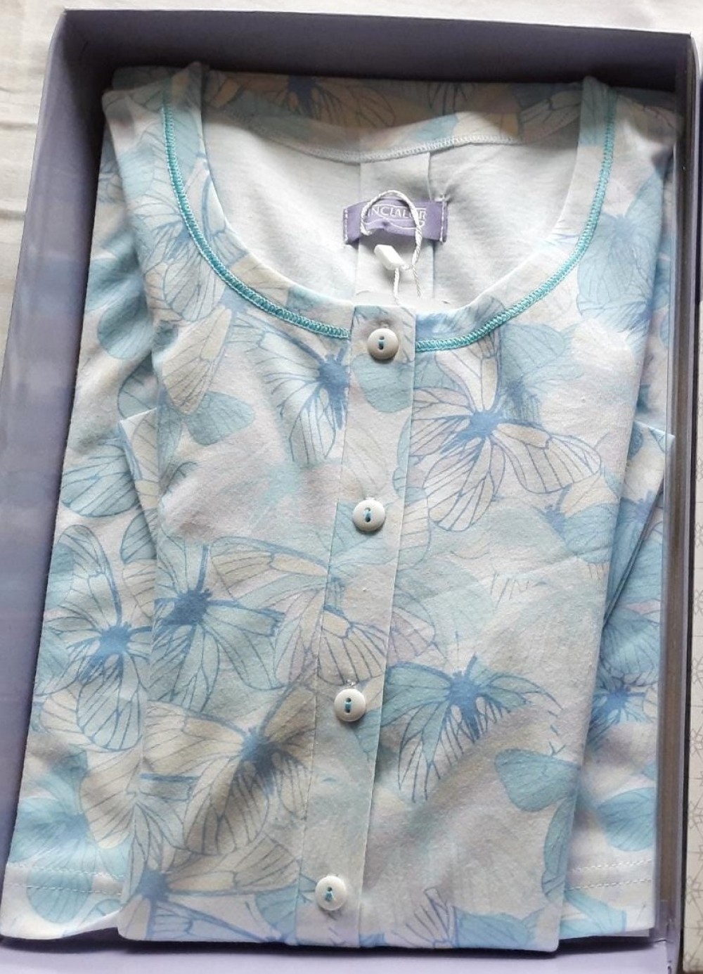 Camicia da notte realizzata in jersey stampato con scollo serafino e soffietto sul retro