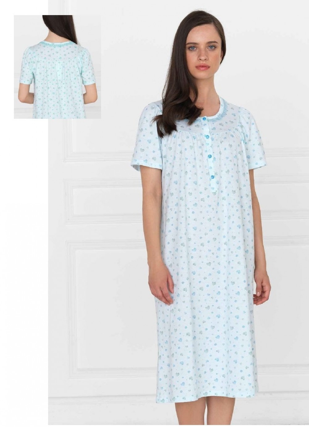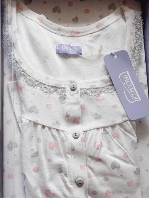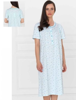 Camicia da notte con scollo serafino e maniche alla raglan realizzata in jersey stampato