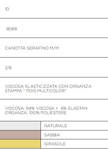 Canottiera serafino e mezza manica in viscosa elasticizzata con inserti in organza a stampa pois multicolor