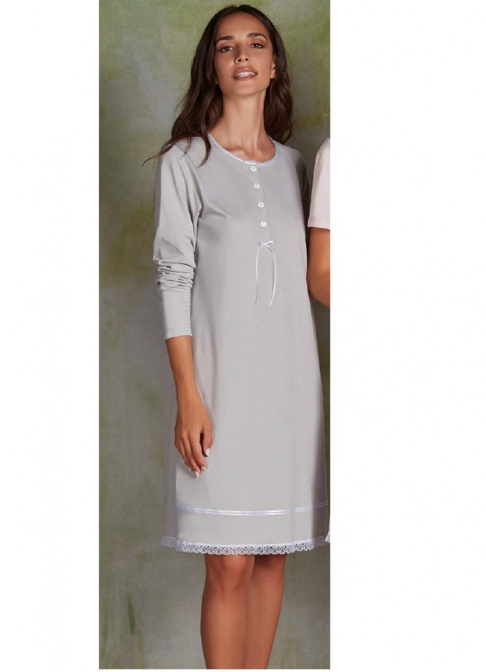 Camicia da notte realizzata in jersey di cotone con puntina e nastrino e con scollo a serafino