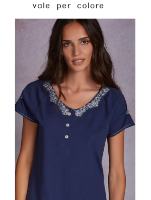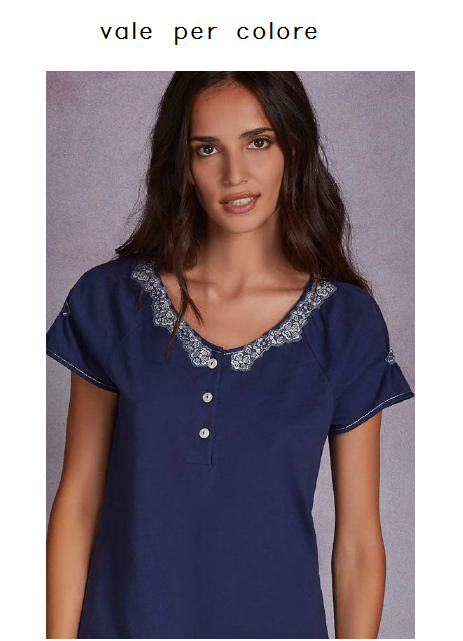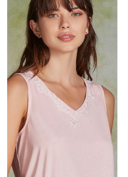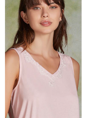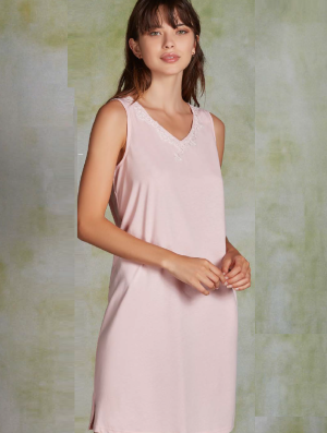 Camicia da notte senza maniche realizzata in jersey impreziosito da ricamo a cordonetto
