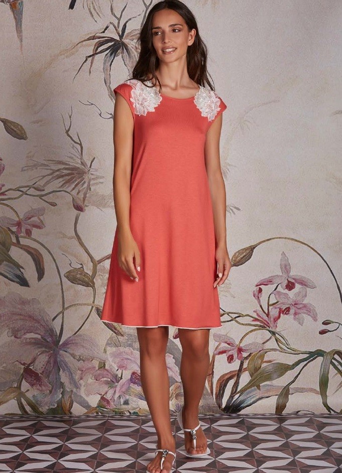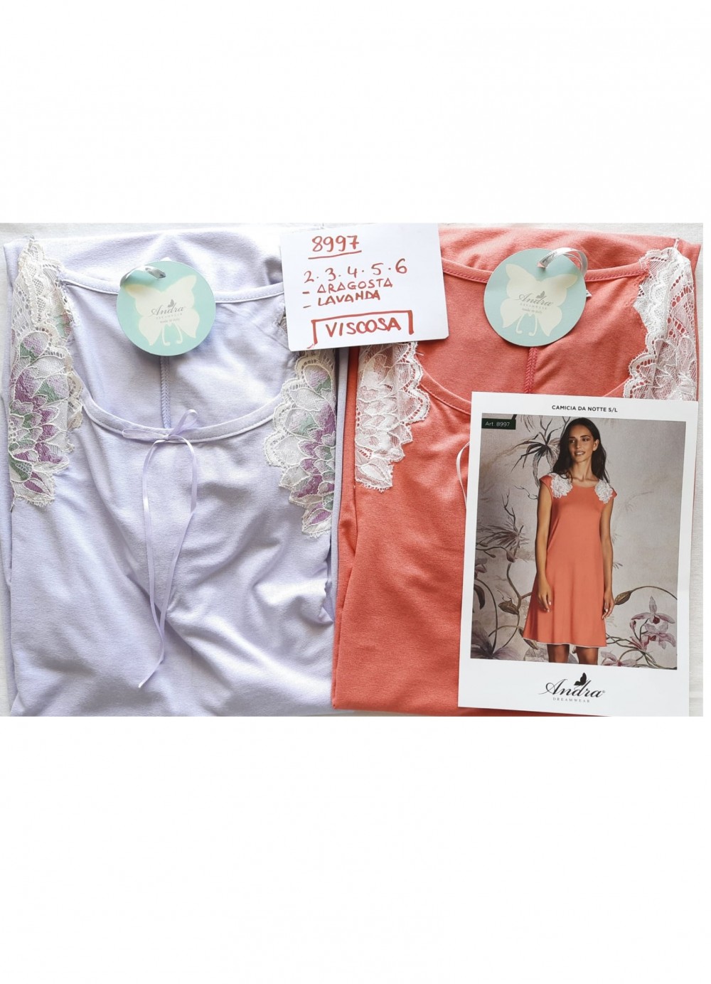 Camicia da notte realizzata in viscosa con pizzo a frastaglio sulla spalla