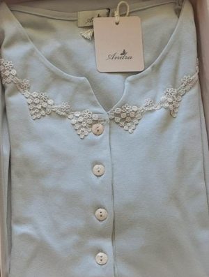 Camicia da notte realizzata a costina 1:1 con ricamo a macramè