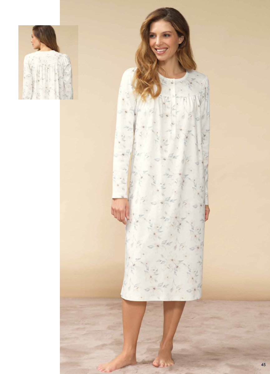 Camicia da notte con scollo serfino e maniche raglan realizzata in interlock di cotone stampato