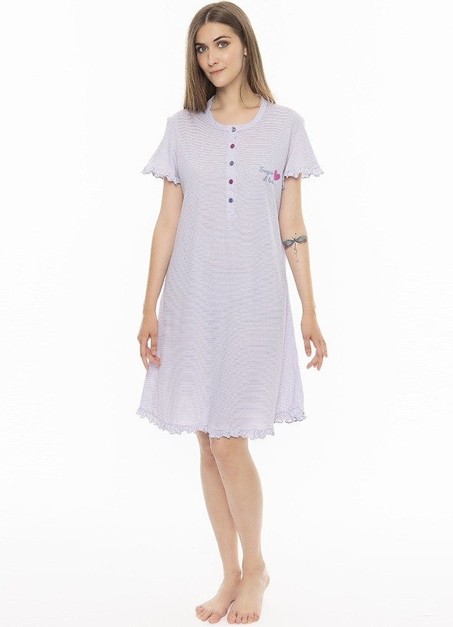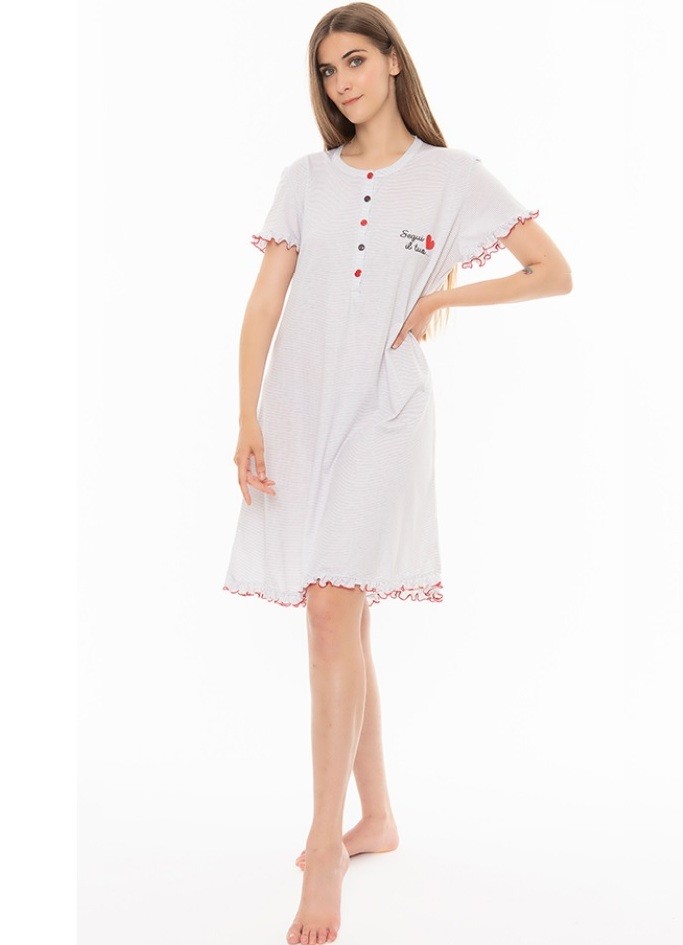 Camicia da notte realizzata in cotone a fantasia con stampa e con scollo serafino