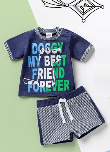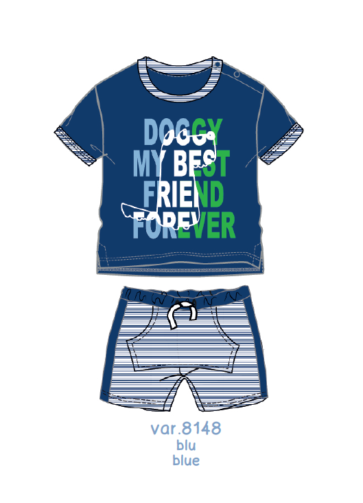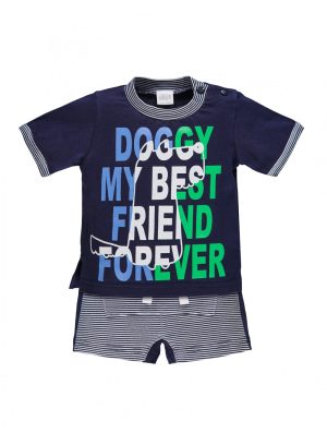 Completo corto realizzato in jersey di cotone composto da maglia stampata e pantalone con coulisse