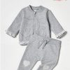 Completo realizzato in cotone felpato composto da maglia stampata con elastico ai polsini e pantalone a fantasia con coulisse