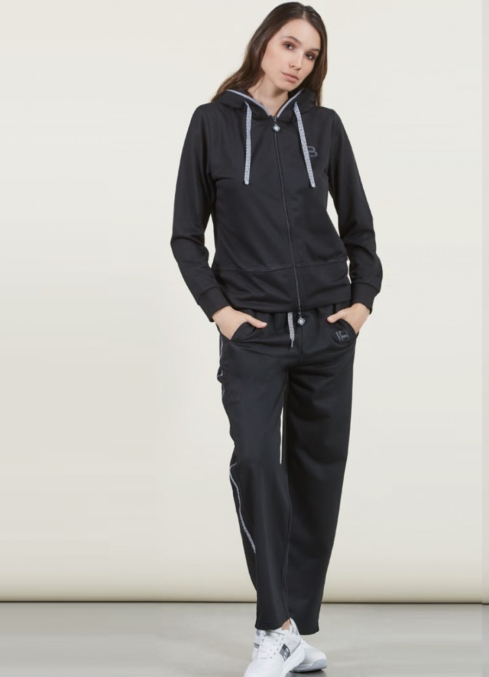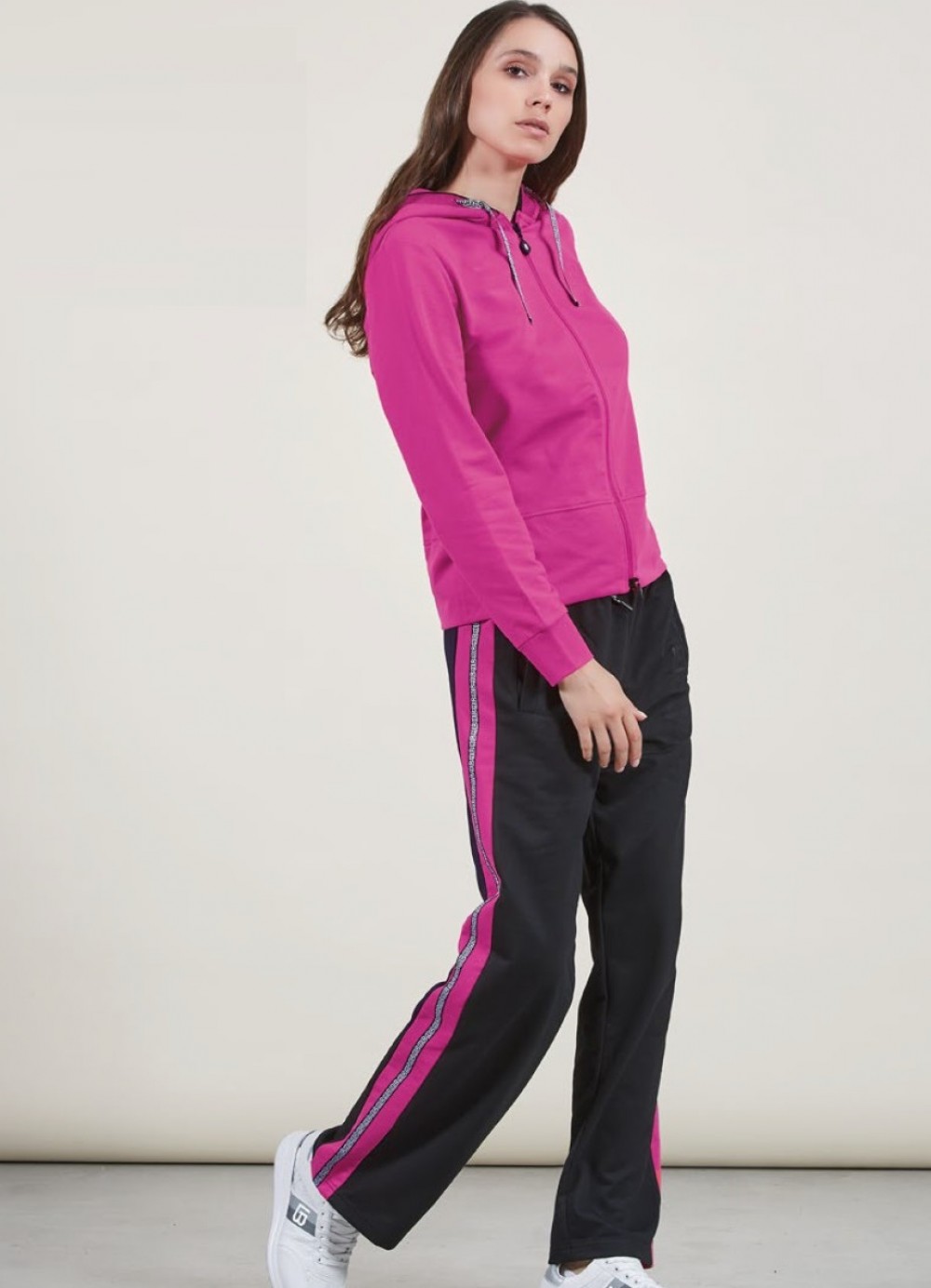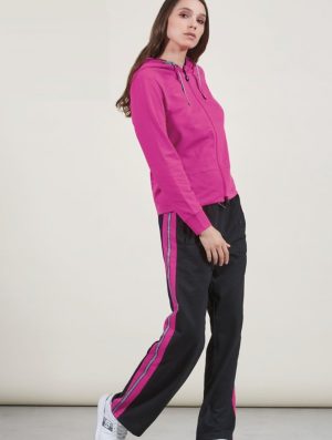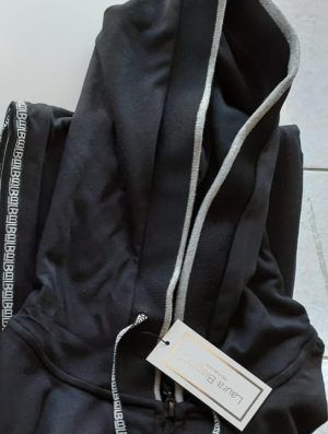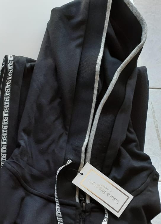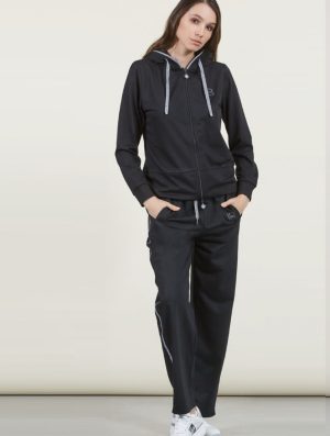Completo composto da maglia full zip con cappuccio e pantalone lineare con banda loggata sui latiCompleto 50% cotone 50% poliestere