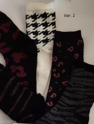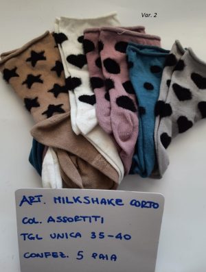 Calza corta ricamata con lurex realizzata in caldo cotone in confezione da 5 paia assortite nei colori. Taglia unica 35-40