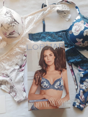 Completo realizzato in microfibra, stampa floreale e pizzo prezioso “PROMENADE” composto da reggiseno a balconciono PLUNGE con scollatura profonda, e imbottitura soft touch abbinato a Brasiliana