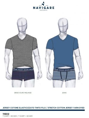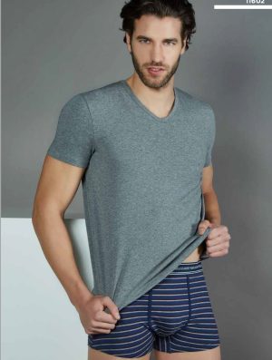 Coordinato in jersey di cotone elasticizzato composto da t-shirt mezze maniche scollo a V e boxer