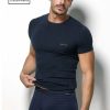 Completo realizzato in cotone elasticizzato composto da maglia loggata e a tinta unita con scollo a giro e slip con elastico alto loggato e bande lateraliComposizione 95% cotone 5% elastan