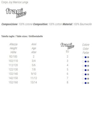 TAGLIA 2 = 2/3 ANNI – TAGLIA 3 = 3/4 ANNI – TAGLIA 4 = 5/6 ANNI – TAGLIA 5 = 7/8 ANNI – TAGLIA 6 = 9/10 ANNI –