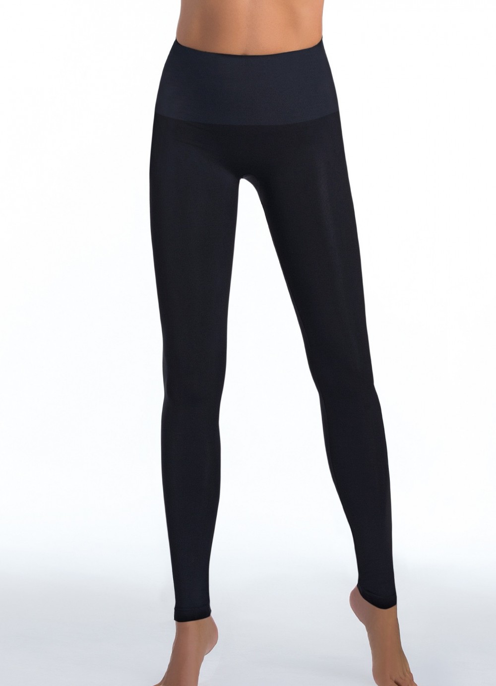 Leggings liscio, dotato di una cintura modellante in grado di snellire la vita e la pancia. Il modello è ultra-confortevole, in grado di valorizzare la silhouette di ogni donna grazie anche ad un effetto contenitivo sulle gambe, che elimina le imperfezioni.