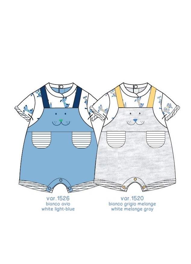 Pagliaccetto stampato e ricamato realizzato in jersey di cotone