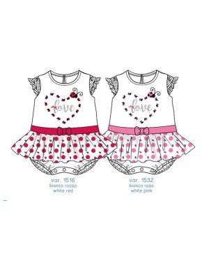 Pagliaccetto ricamato e stampato realizzato in jersey elasticizzato