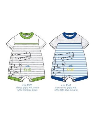 Pagliaccetto stampato e ricamato realizzato injersey elasticizzatoComposizione 95% cotone 5% elastan
