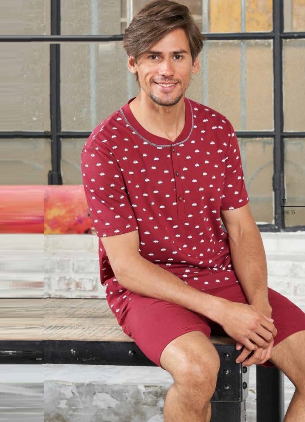 Pigiama corto realizzato in jersey composto da maglia stampata con scollo serafino abbinata a pantaloncino corto unita