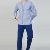 Pigiama realizzato in cotone pettinato composto da maglia aperta in micro fantasia e pantalone lineare a tinta unitaComposizione 100% cotone