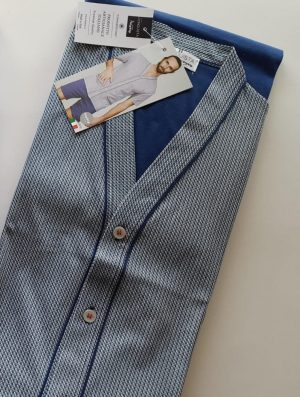Pigiama corto realizzato in jersey di cotone stampato per la maglia aperta con tasche ed unito per il pantaloneComposizione 100% cotone