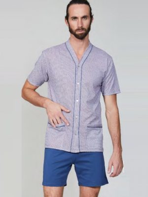 Pigiama corto realizzato in jersey di cotone stampato per la maglia aperta con tasche ed unito per il pantaloneComposizione 100% cotone