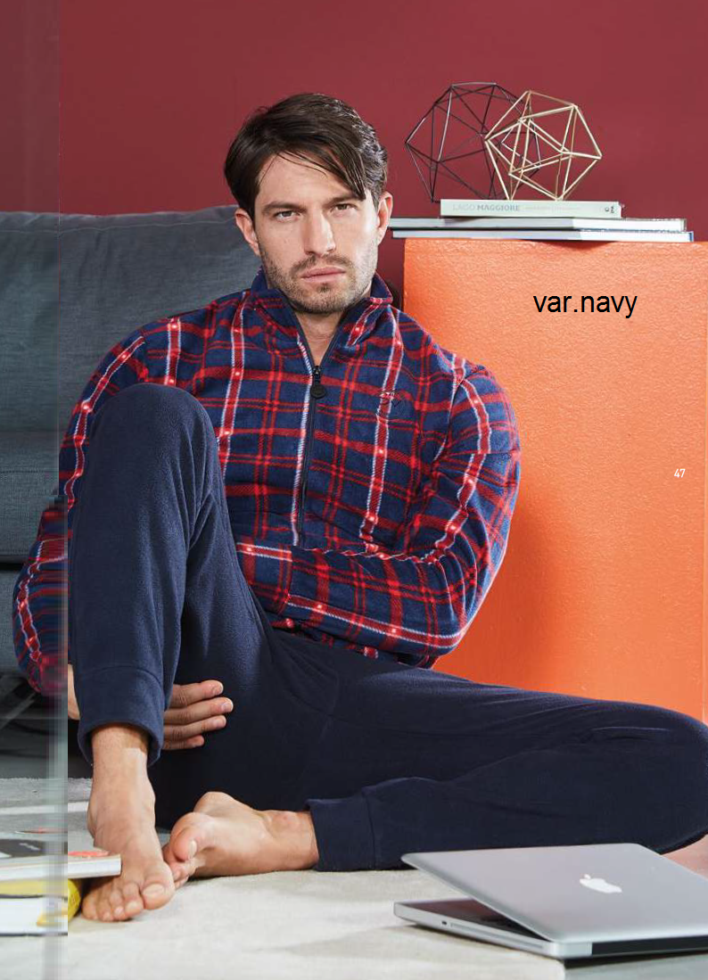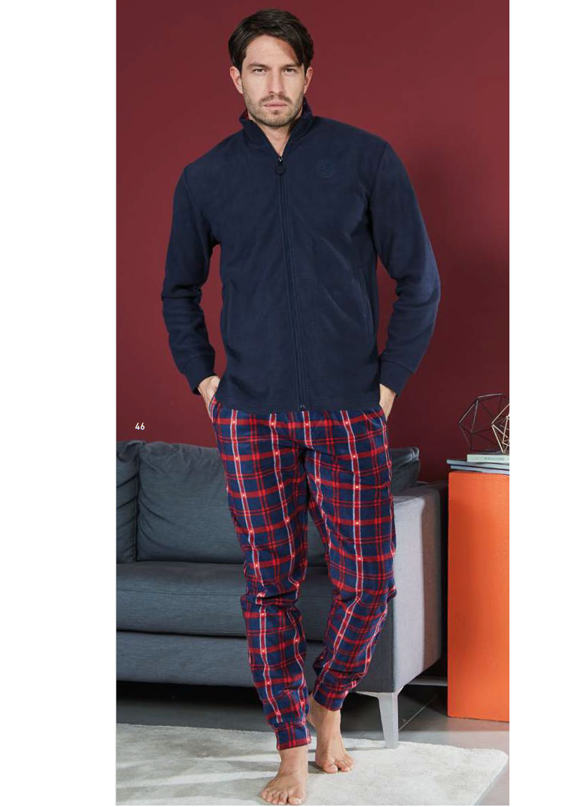 Pigiama realizzato in coral con maglia full zip, unita per il colore blu e a fantasia per il colore navyComposizione 100% poliestere