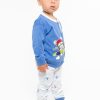Pigiama lungo realizzato in interlock di cotone composto da maglia stampata con scollo serafino abbinata a pantalone con polsini e con il colore in contrasto