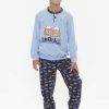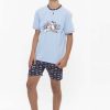 Pigiama corto realizzato in jersey di cotone composto da maglia con scollo serafino a 2 bottoni e stampa, abbinata a pantalone a fantasia