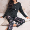 Pigiama realizzato in cotone modal mano calda composto da maglia stampata a grandi fiori con scollo seafino e pantalone a tinta unita con polsini