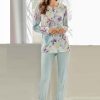 Pigiama lungo composto da maglia a fantasia con scollo serafino abbinata a pantalone a tint unita con polsino