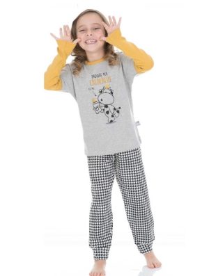 Pigiama in caldo cotone girocollo composto da maglia bicolor con stampa centrale e pantalone con polsino a fantasia