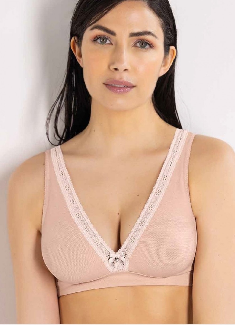 Reggiseno a trinagolo non imbottito e senza ferretto realizzato su un tessuto con lavorazione jacquard, con una piccola trama a nido d’ape dall’allure
