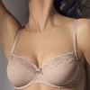 Push-up con coppe graduate e ferretto realizzato in tessuto stretch a nido d’ape con lavorazione a jaquard. La profonda scollatura è enfatizzata da un dettaglio gioiello con strass a centroseno. Il torace è realizzato con malizioso pizzo in ton sur ton. Rifinito con spalline operate regolabili.