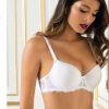 Fascia interamente realizzata in pizzo con coppe imbottite, ferretto e spalline removibili. Modello con stecche laterali e profili in silicone per assicurare ottima vestibilità anche senza spalline.