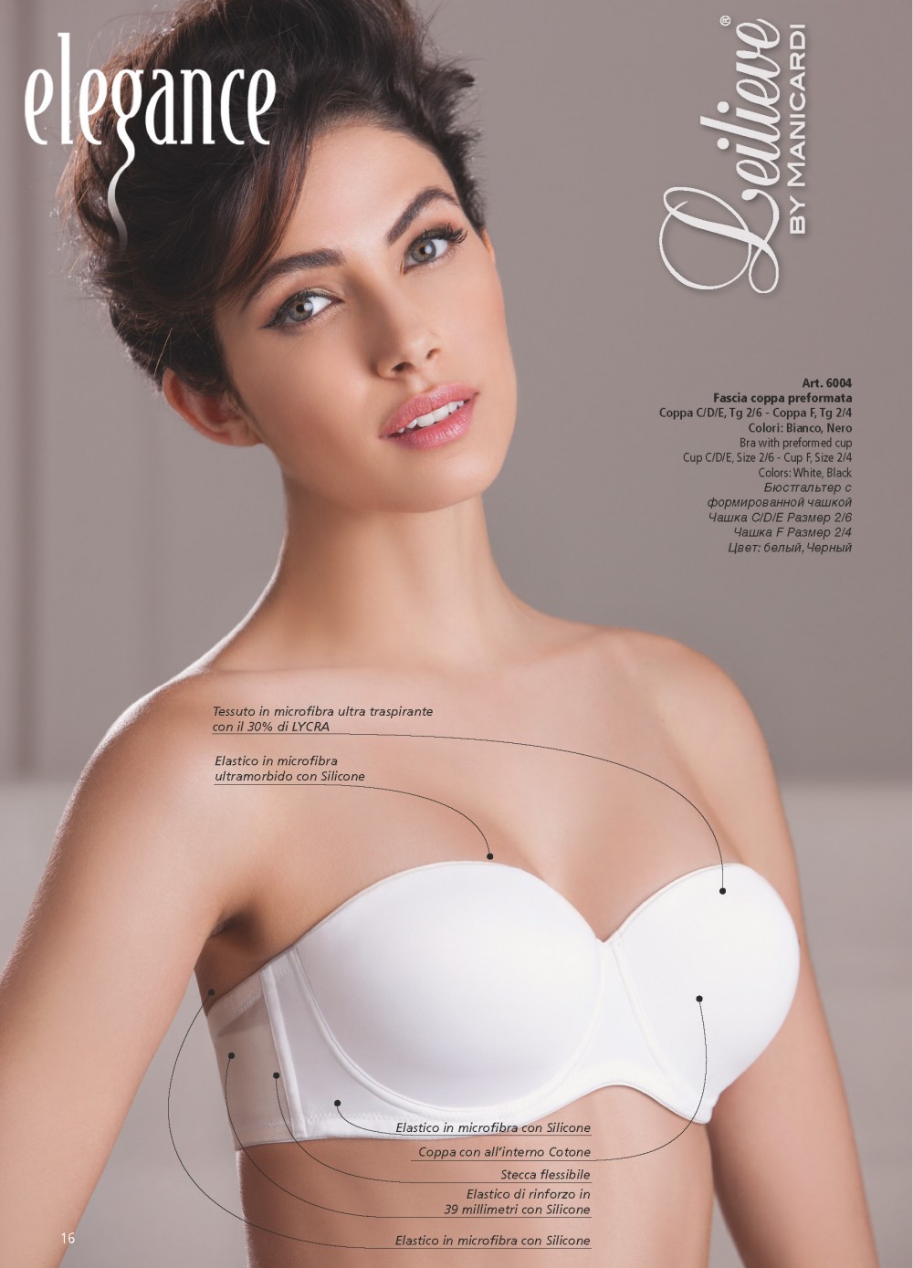 Reggiseno a fascia con coppa preformata con all’interno cotone. Tessuto in microfibra ultra traspirante come l’elastico al quale è stato aggiunto il silicone per renderlo ultramorbido