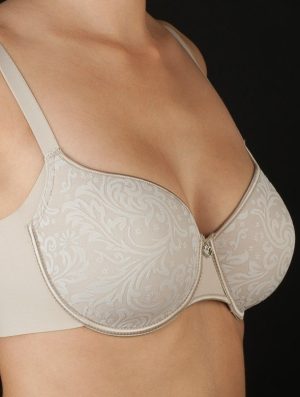 Reggiseno realizzato in tessuto con lavorazione jaquard con coppa imbottita e ampia fascia laterale per nascondere le imperfezioni
